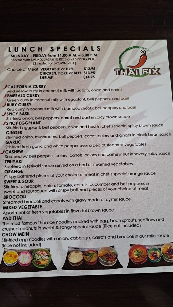 Introducing the menu at Thai Fix, a culinary gem located in Huntington Beach, CA, where the warm atmosphere invites you to indulge in authentic Thai flavors. This Asian and women-owned establishment brilliantly melds a classy yet casual dining experience, making it perfect for groups, families, or a cozy night out.